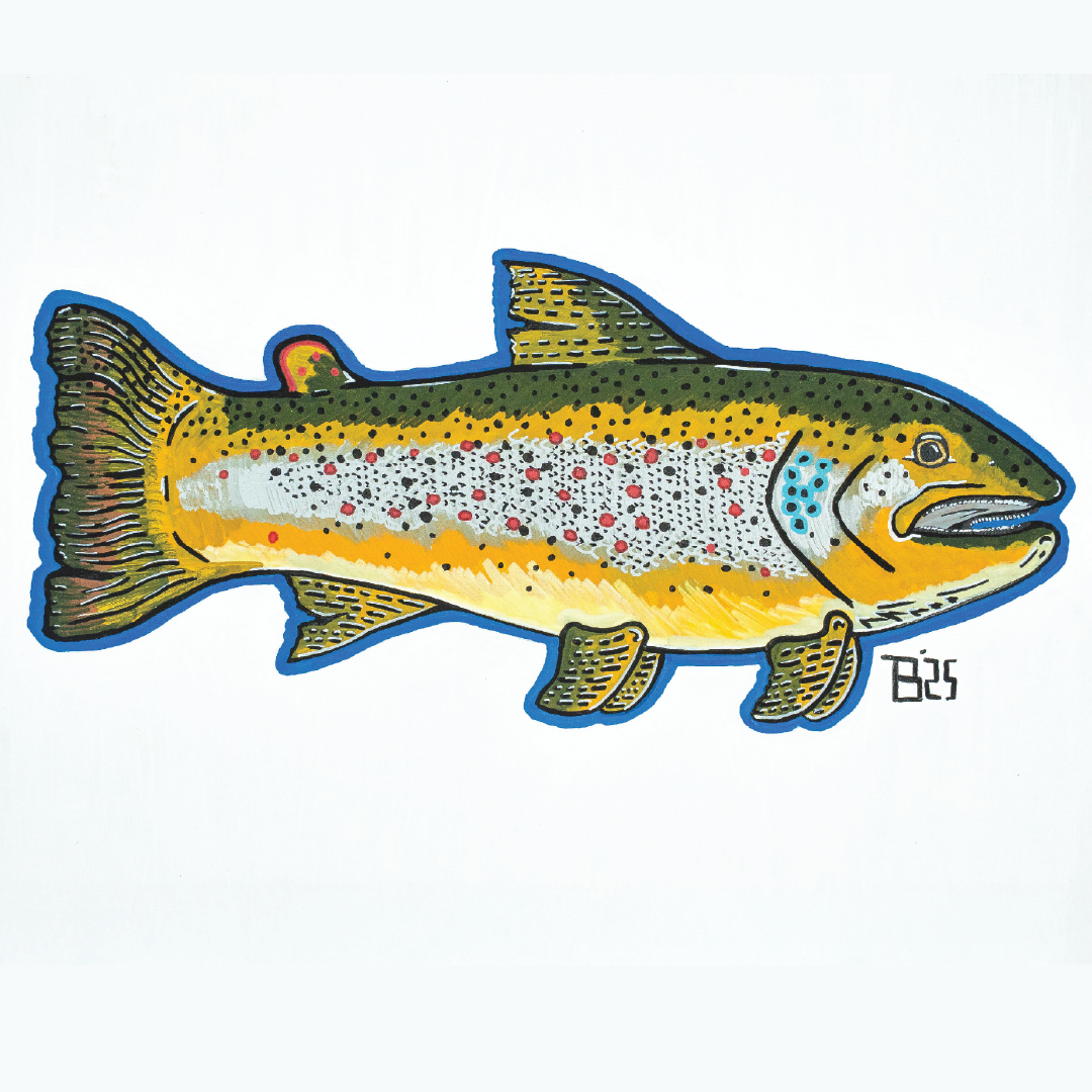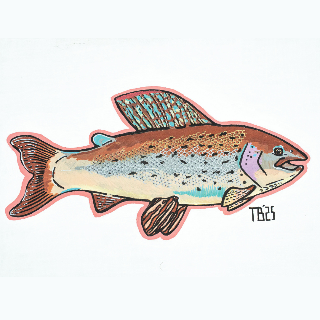 Categories: All Original Works Greeting Cards Stickers Prints All | Original Works | Greeting Cards | Stickers | Prints | Outliners - Georgetown Brook Trout - Original $150.00 Outliners - Big Hole Grayling - Original $150.00 Outliners - Alaskan Laker - Original $150.00 Flank-N-Fly - Yellowstone Cutthroat Trout - Original $600.00 Flank-N-Fly - Steelhead - Original $600.00 Brown Trout Flank Study 1 $400.00 Sold out Flank-N-Fly - Steelhead - Giclee Print $25.00 Flank-N-Fly - Yellowstone Cutthroat Trout - Giclee Print $25.00 Outliners - Alaskan Laker - Giclee Print $25.00 Outliners - Flathead Smallmouth - Giclee Print $25.00 Outliners - Rock Creek Rainbow - Original $150.00 Sold out Outliners - Bitterroot Brown - Original $150.00 Outliners Series - Westslope Cutthroat Trout - Giclee Print $25.00 Splatter Fly - Night Hawk - Original $150.00 Splatter Fly - Undertaker - Original $150.00 Splatter Fly - Green Butt Skunk - Original $150.00 Outliners Series - Big Hole Grayling - Giclee Print $25.00 Outliners Series - Georgetown Brook Trout - Giclee Print $25.00 Outliners Series - Blackfoot Bull Trout -Giclee Print $25.00 Outliners Series - Rock Creek Rainbow - Giclee Print $25.00 Outliners Series - Bitterroot Brown - Giclee Print $25.00 Bitterroot Brown Sticker $8.00 Steelhead Sticker - HOLOGRAPHIC $8.00 Rock Creek Rainbow Trout Sticker $8.00